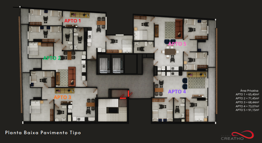 Os apartamentos terão dois ou três dormitórios, com metragens entre 65 e 91 metros quadrados. As plantas priorizam ambientes integrados, melhor aproveitamento dos espaços e funcionalidade para o cotidiano das famílias beneficiadas.